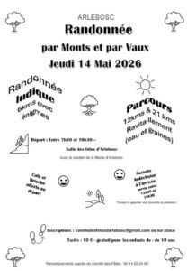 Une randonnée ludique 6 KM avec énigmes et deux autres randonnées de 12 et 21 km avec ravitaillement.